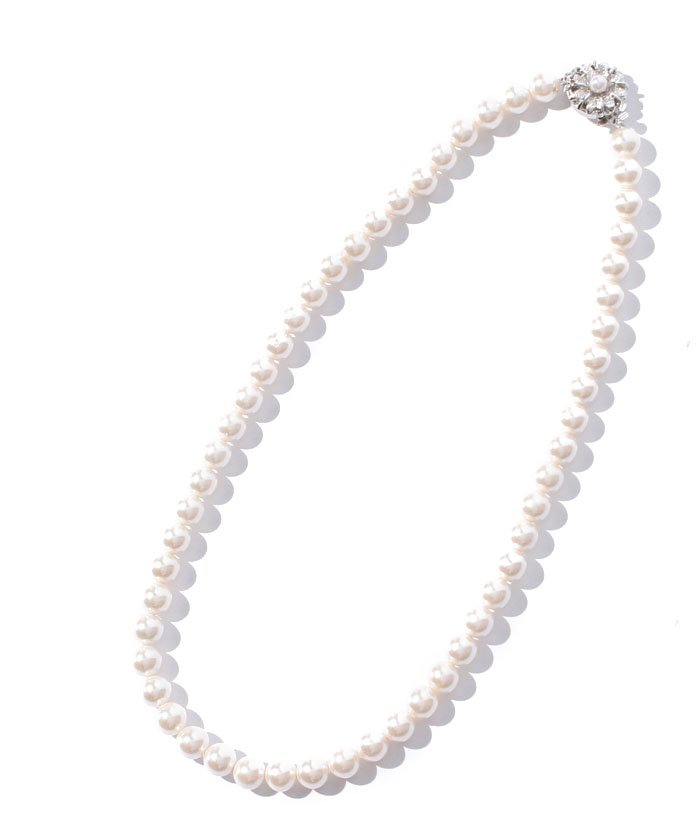 シンプルな1連パールはブラックフォーマルでは勿論、ドレスやスーツあわせにも使える優れもの。女性のたしなみとして、1本は持っておきたいアイテムです。貝パール7mm玉/38cm