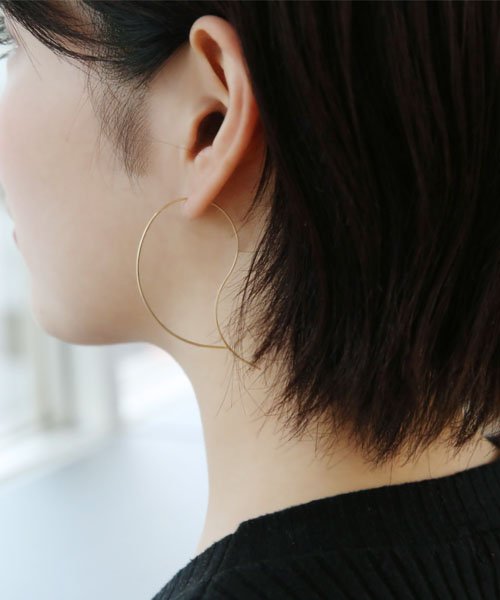 独特なカーブが美しいピアス。華奢ながら他とは違うデザインが目を惹くアイテムです。絶妙なサイズが存在感を発揮。上品で洗練された印象を与えます。どんなコーディネートにもよく映えるひとしなです。