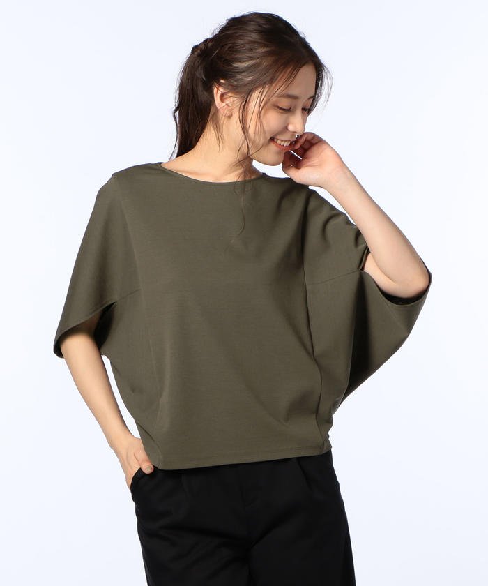 ふっくらとしたドルマンスリーブがリラックスコーデをセンス良く仕上げるカットソー。風通しが良く涼しげな着心地を確保しつつ、気になる腕をカバーできるゆったりシルエットが嬉しいアイテム。どのボトムにも合わせやすく着回し力も抜群です。程よくハリがあり型崩れしないのもお洒落に着こなせるポイントです。