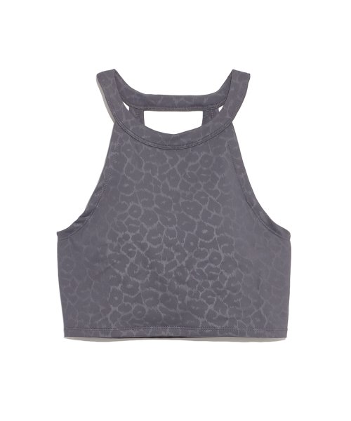 さりげないレオパード柄のエンボス加工を利かせた、スパイシーなトップス。カップインなので、1枚でヨガシーンも快適なモノに。単品使いはもちろん、レイヤードスタイルのアクセントにセレクトするのもお勧めです。