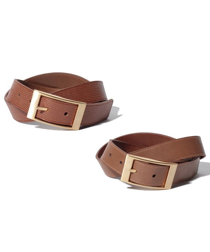 シンプルな無地とリッチな型押し、リバーシブルで使えるベルトです。スクエアバックルもミニマムデザインにして、長く愛用できるひと品に仕上げました。