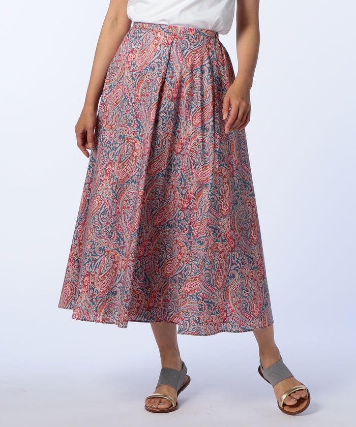 夏らしさ満点の、彩り豊かなペイズリープリントスカート。ふんわり広がるフレアシルエットで、コーディネートを女性らしく引き立てます。存在感をしっかりと放つので、シンプルになりやすい夏スタイルの主役にぴったり。大人なミモレ丈は、ヒールサンダルからフラットなスニーカーまで幅広く合わせられます。