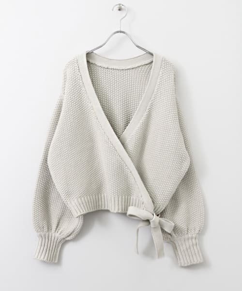 カシュクールを主役にし、カーディガンとして着こなすのはもちろん、前後2WAYで着れるデザインだから、ニットプルオーバーとして楽しんでも◎綿を含んだ軽い肌触りや、ざっくりとしたカノコ編みは春を感じさせますね。シンプルなスタイリングにプラスしたり、柄ワンピースの上に重ねたレイヤードコーデも可愛い。リボンベルトの結び方は自由なので、お好みでアレンジしてみて。絶妙なシルエットは、コーディネートに自然と抜け感をプラスしてくれますよ。