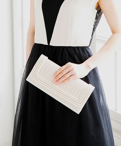 【結婚式・お呼ばれ対応】パールラインパーティークラッチバッグ