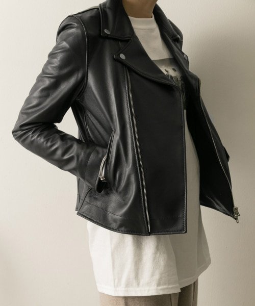 柔らかいラムレザーを使用したライダースブルゾン。