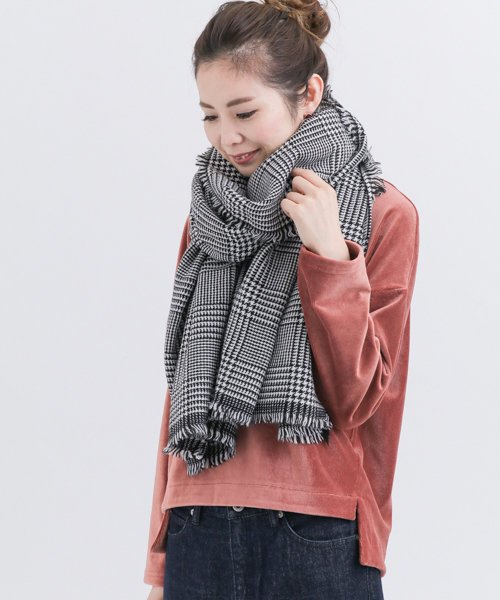 イタリア製の上質な素材を使用したチェックストール。上品でエレガントな雰囲気にしてくれる千鳥格子柄を採用。首元が寂しい時のアクセサリー代わりに是非。