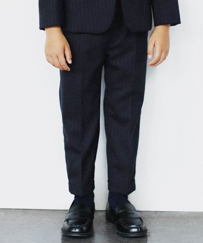 ダブル仕上げの裾やセンタープレスが大人顔負けのデザイン。