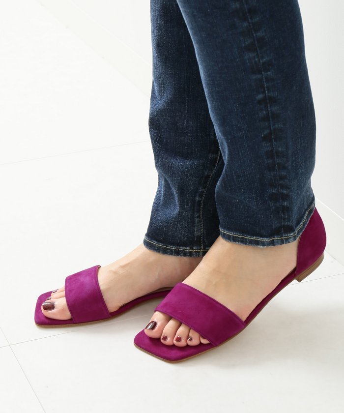 スクエアトゥが大人っぽい雰囲気を醸し出すフラットサンダル。