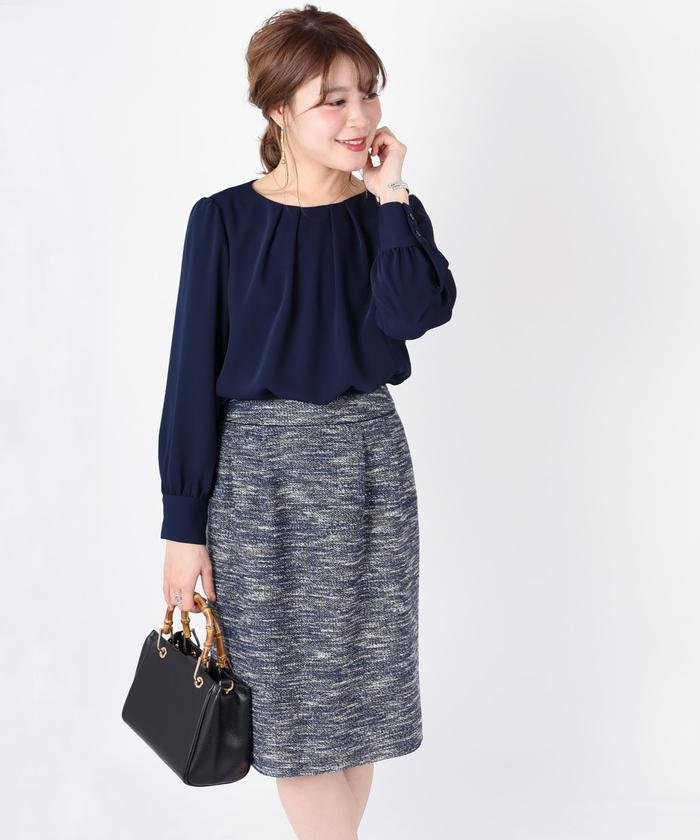 毎シーズンご好評のイタリアMAPEL社の生地を使用した、絶妙なミックスツイードが大人っぽい雰囲気のスカートとブラウスがコンビになったワンピースが登場♪