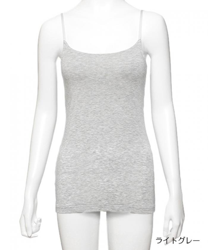 どんなバストにも合わせやすい、L字ワイヤーの3/4カップブラを内蔵したシンプルなルックスのキャミソール。身生地はテンセルベア天竺。柔らかな風合いとなめらかな肌触りが気持ちの良い素材です。バック布は二重構造でしっかり支えます。背中には幅広のストレッチテープを入れてフックなしでも幅広いサイズ対応が可能です。ワイヤーが変形するおそれがありますので下から履くようにして着用してください。パッド:ありアジャスター:ありB79 W50 H86 着用サイズ:M2