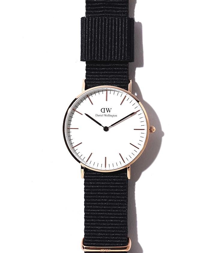 Daniel Wellington・2011年に設立されたスウェーデン発の腕時計ブランド。スタイリッシュに身につけられる36mm、ゴールドフレームに白フェイスで洗練された印象。見やすい時刻で日常使いしやすいです。