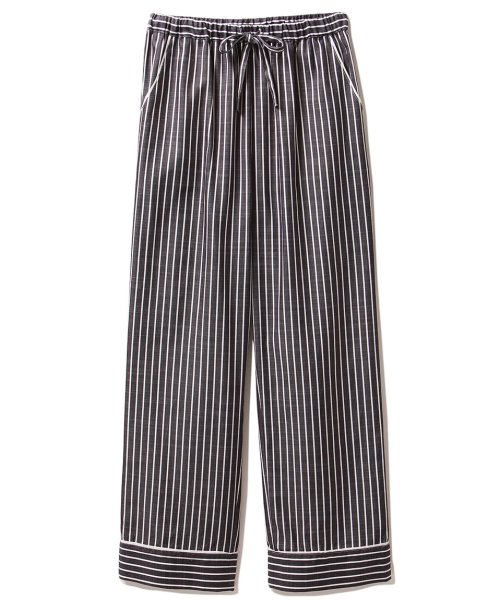 レディースとおそろいで楽しめる、ストライプ柄のロングパンツが登場しました。厚手のツイル生地を使用ているので、冬でも暖かな着心地が叶う、ベーシックな一本になっています。裾とウエストポケットには、高級感のある配色パイピングを施し、ウエストにさりげなくあしらわれたジェラートピケの刺繍が高級感を演出します。メンズVer.は、ネイビー×白にシルバーの刺繍を加えて都会的に、レディースはピンク×白でラインナップ。同素材のシャツとセットアップで着こなせば、こなれ感が生まれます。