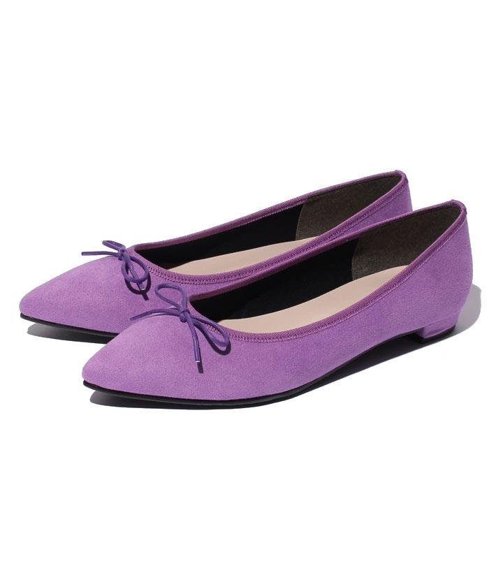 味わいのあるマットな質感のアッパーで季節感も高まる、レディモダンなバレエシューズ。シャープなトゥシルエットと華奢なリボンが脚のラインを美しく見せてくれます。