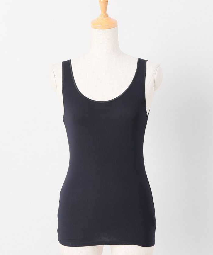 ベーシックなフォルム、ボディに程よくフィットするタンクトップはインナーはもちろん、レイヤードスタイルまで幅広く着回せるのがうれしいポイント。