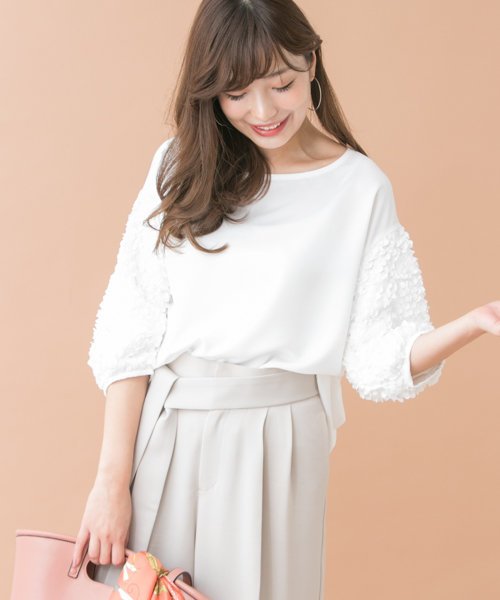 【袖にあしらわれた立体感のあるレースが華やかなプルオーバー】