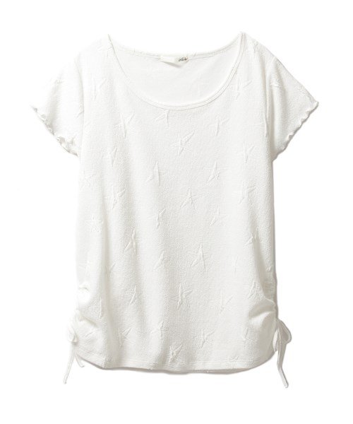 星柄が織り込まれたジャガードプルオーバー。同色の星柄なのでポップになりすぎず、合わせやすいのが、魅力的です。キラキラした糸を使用しており、ドリーミーに着れます。