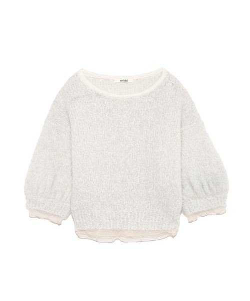 ふわふわの毛並みが愛らしいフェザーニットに、ほんのりとラメを織り交ぜてリッチにデザイン。