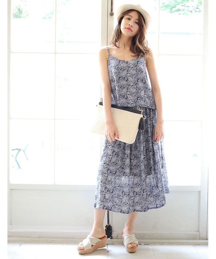 ペイズリー柄キャミトップスプリーツスカート2点セット