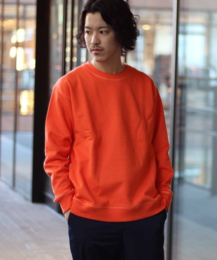 通常のスウェットよりも生地は薄く仕上がっている為インナー使いや春先に重宝できる一着。