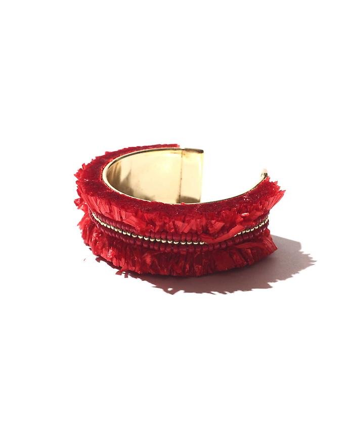 フサフサのフリンジが存在感たっぷりなバングル。ビーズがアクセントを効かせ、大人エスニックな雰囲気を演出してくれます。ボリューム感のあるデザインはアクセント使いにピッタリ。いつものコーディネートにプラスするだけでシーズンらしい着こなしにシフトしてくれます。