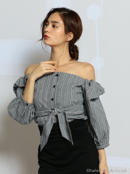 ワイドな開きのあるネックラインがヌケ感を演出してくれるブラウス。フロントを結んだリボンがアクセントになっています。トレンドライクなパフスリーブも可愛らしさたっぷり!