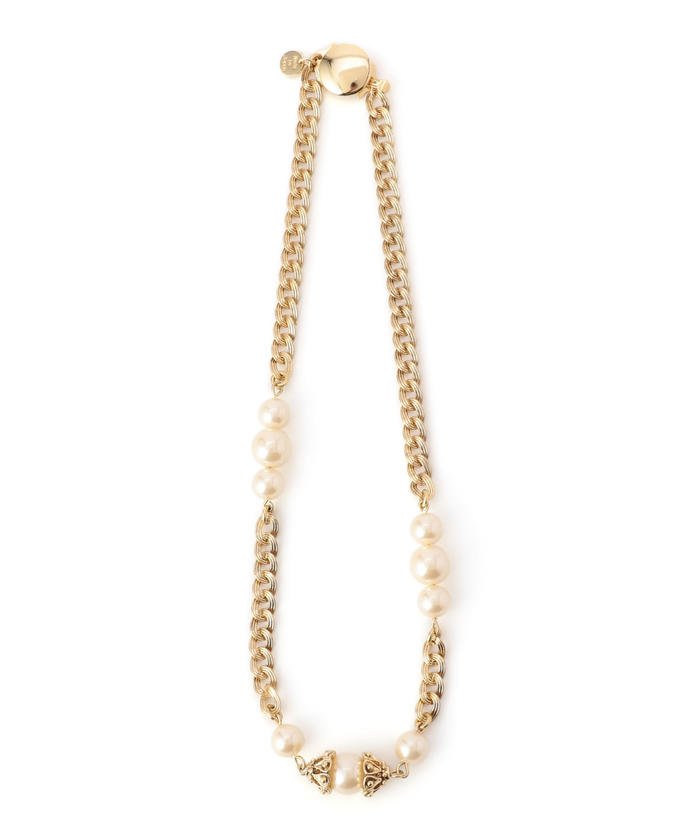 太めのチェーンにパールモチーフが、アンティーク風なデザイン。