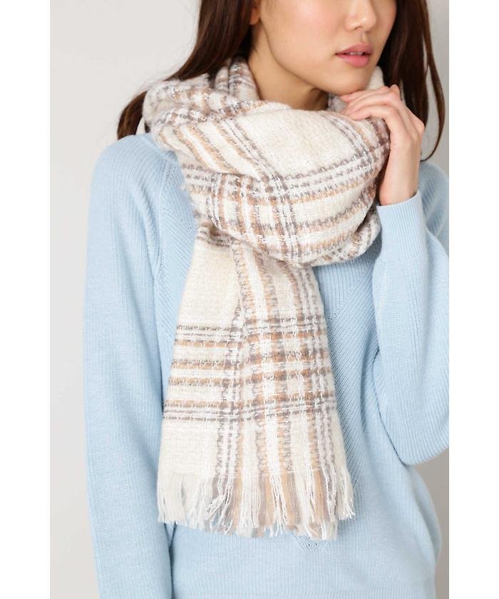 優しい印象を与えるパステルチェックラメストール。さりげなくラメ糸を一緒に織り込んだフェミニンな仕上がりです。シンプルなスタイリングと合わせやすいアイテムです。※ラメ入り