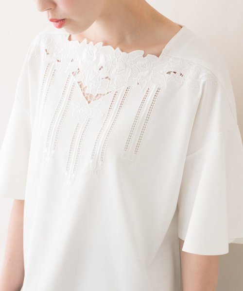 トレンドのレース刺繍のデザインが目を引くTシャツ。