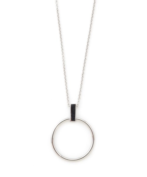 シルバーとゴールドの2色展開です。トップのリングモチーフがポイントのロングネックレスです。ワンピースやシンプルなトップスともバランスよく仕上がる絶妙な長さです。留め具で長さ調整が可能です。