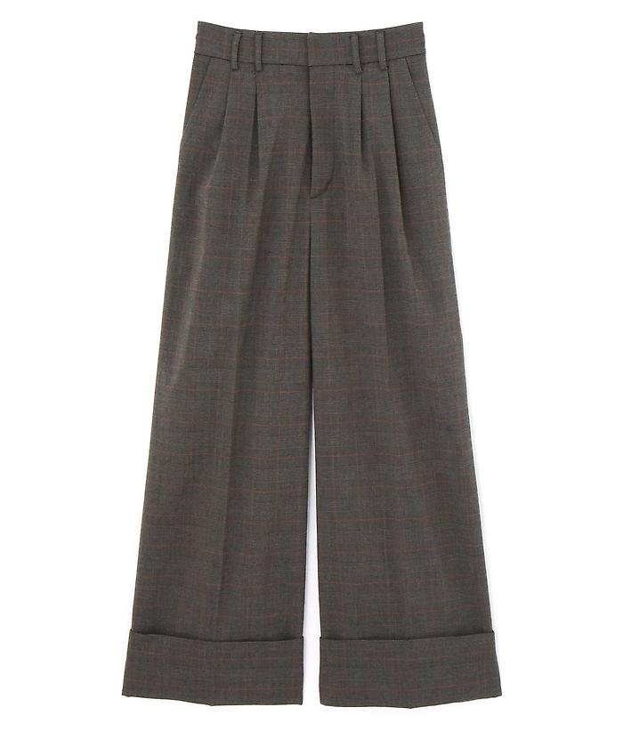 今年トレンドのクラシカルなグレンチェック柄とストライプのワイドパンツシリーズ。センタープレスと裾のロールアップで上品な表情に仕上げました。すとんと落ちるワイドシルエットがマニッシュな雰囲気の一着。ロゴTと合わせてカジュアルダウンさせると新鮮なコーデに。一枚着るだけで一気にトレンド感がアップするシルエットは、着回しの効く万能アイテムです。グレンチェックには、落ち着きのある花柄トップスでヴィンテージ感のあるコーディネートを、ストライプは今期注目パープルなどカラーボリュームニット(6007214027)を併せても楽しんでいただけます。