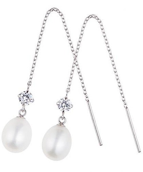 一粒のタンスイパールの上にキュービックジルコニアがきらきらと輝くピアス。