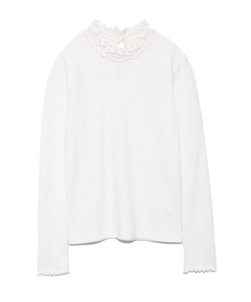 ボトムスを選ばず、シーズン長く愛せるシンプルな形ながら襟元と袖口には華やかなメロウ仕立てで女の子らしさ満点に仕上げました。