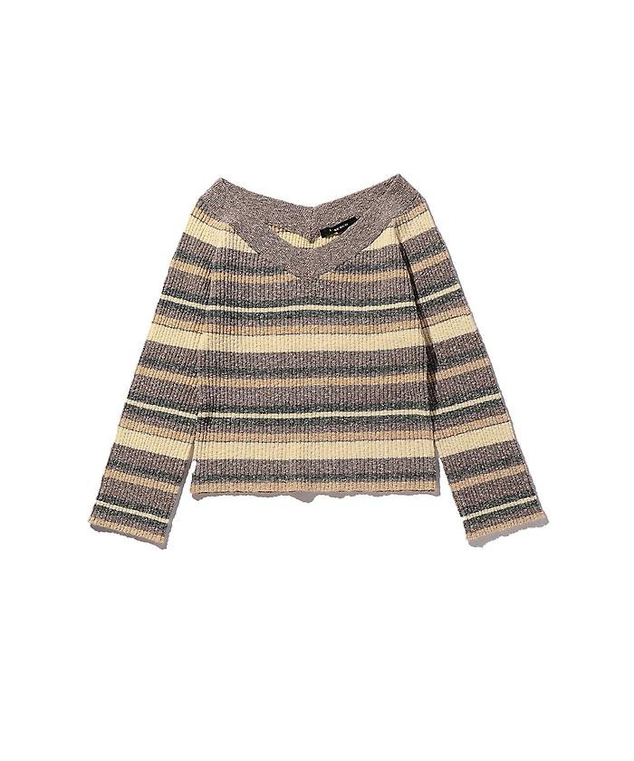 きれいな配色のボーダーが目を引くニットプルオーバー。色とピッチの異なるランダムなボーダーで表情を演出しました。細いリブ編みがほっそりとした印象を与え、ボディにフィットし着心地も快適。コンパクトに見せる短め丈に仕上げています。