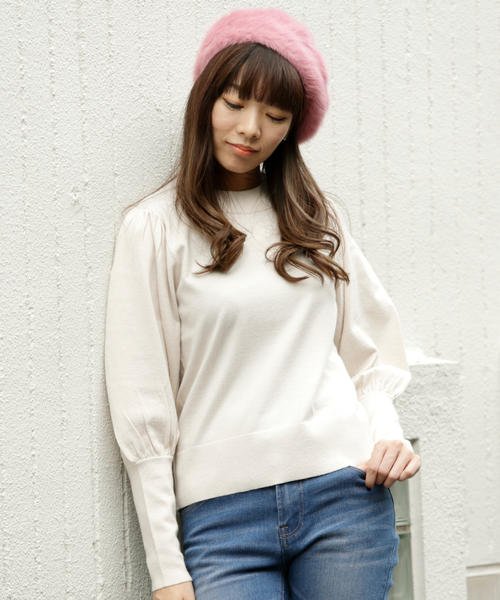 柔らかく滑らかなドレープを寄せたパフスリーブがスウィートに存在感を発揮するプルオーバーです。華奢な手首を演出するロングリブは女性らしさを引き立てるデザイン。着回し力を高めるワントーン無地がデイリー使いに大活躍の予感♪