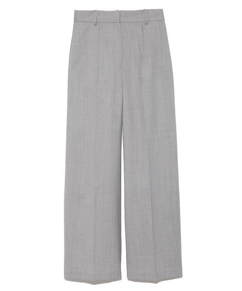 落ち感のあるワイドストレートパンツはセンタープレスをあしらい、よりすっきりとした印象に。