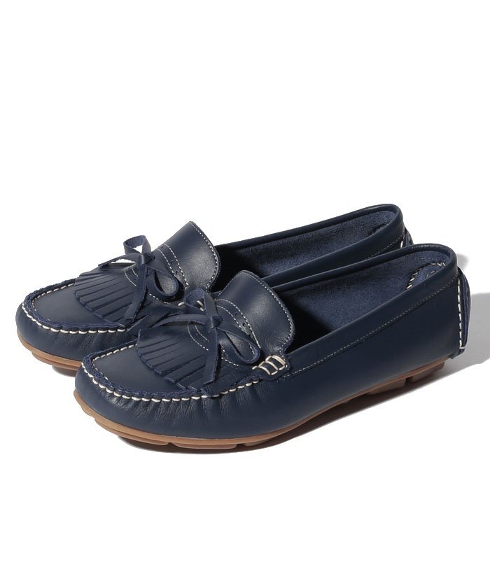 フリンジ×リボンがアクセントになってくれるモカシンシューズ。安定感のあるソールデザインも嬉しいアイテム。デイリーユースやドライブにおすすめです。