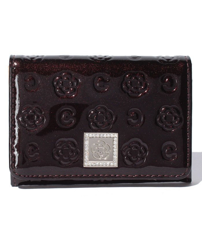 ラメ入りのエナメルにモノグラム柄のカメリアエンボスがリュクス感を演出するベティーシリーズの名刺入れ。使いやすい形と牛革素材、シンプルなデザインで永くお使いいただけます。