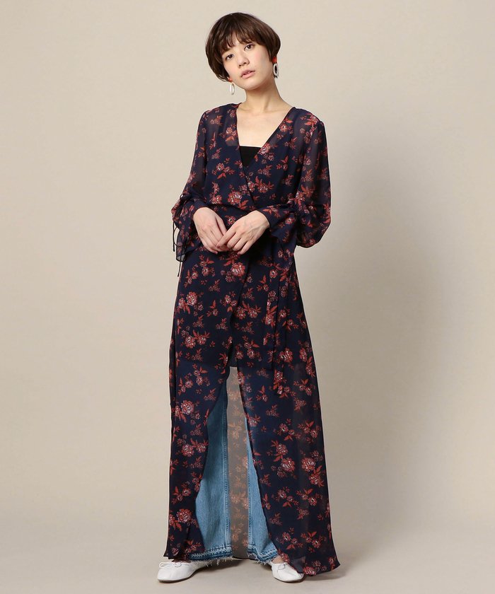 カシュクールデザインになっており、フロントからは足元が覗くのでパンツやレギンスとのレイヤードコーディネートにもぴったり。